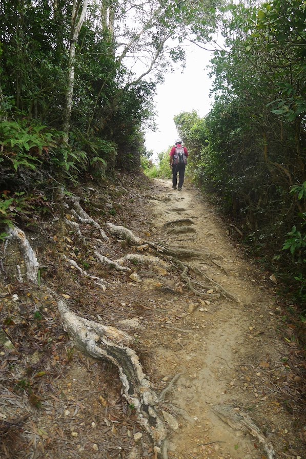 尾程接走鳳凰徑五般,穿過高地的狗稔轉出往萬丈布營地,再下行抵半山的龍仔悟園。往日著名的悟園乃旅遊勝地,唯園主去世後今非已昔比,窺看園內荒廢的池塘景色後,續沿尖峰山鳳凰徑六段一路直落大澳散隊。小組加行登頂全程山路 7 小時。