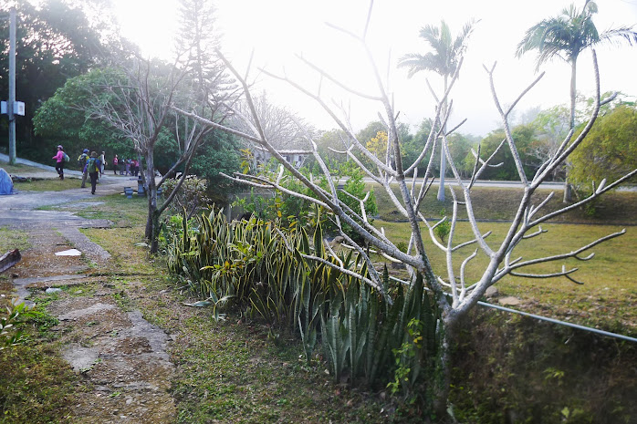 早上10 時15分西貢福民路鄧肇堅運動場外集合,10 時半乘隊伍租用的28座位中巴前往萬宜水庫西灣路。 車送抵西灣路中段近田尾澗外500米起步,進入橫頭墩橫山徑過小澗,續沿西坡密草徑一路登上橫頭墩232m,沿途下瞰萬宜水庫景致,以及近水中央邊緣的水徑頂全貌,隨後橫越副峰212m轉落西灣路擇地大休。