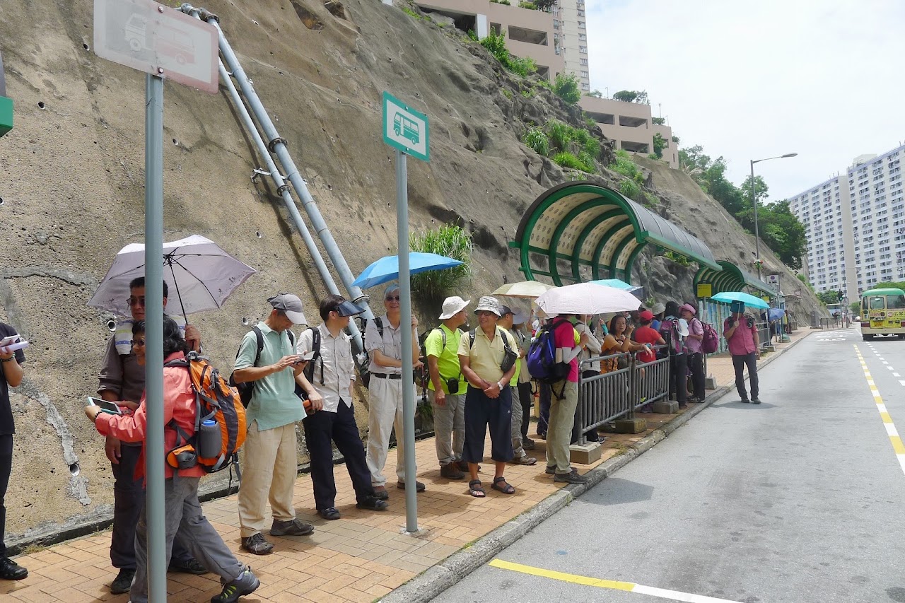 是日為【華景水塘蘇屋村】行程: 上午 11 時 45 分地鐵荔景站集合,正午12 時往乘 47 M 小巴到華景山莊。華景山莊座落葵涌荔景約250m高的山頂區,抵華景商場齊集人後走華景山路,由海峰花園附近下山直落狹谷的長坑村,沿著長坑徑至到大窩石梨頭,接走長源路上往金山郊野公園的石梨貝食水庫,再登小山丘涼亭小休。